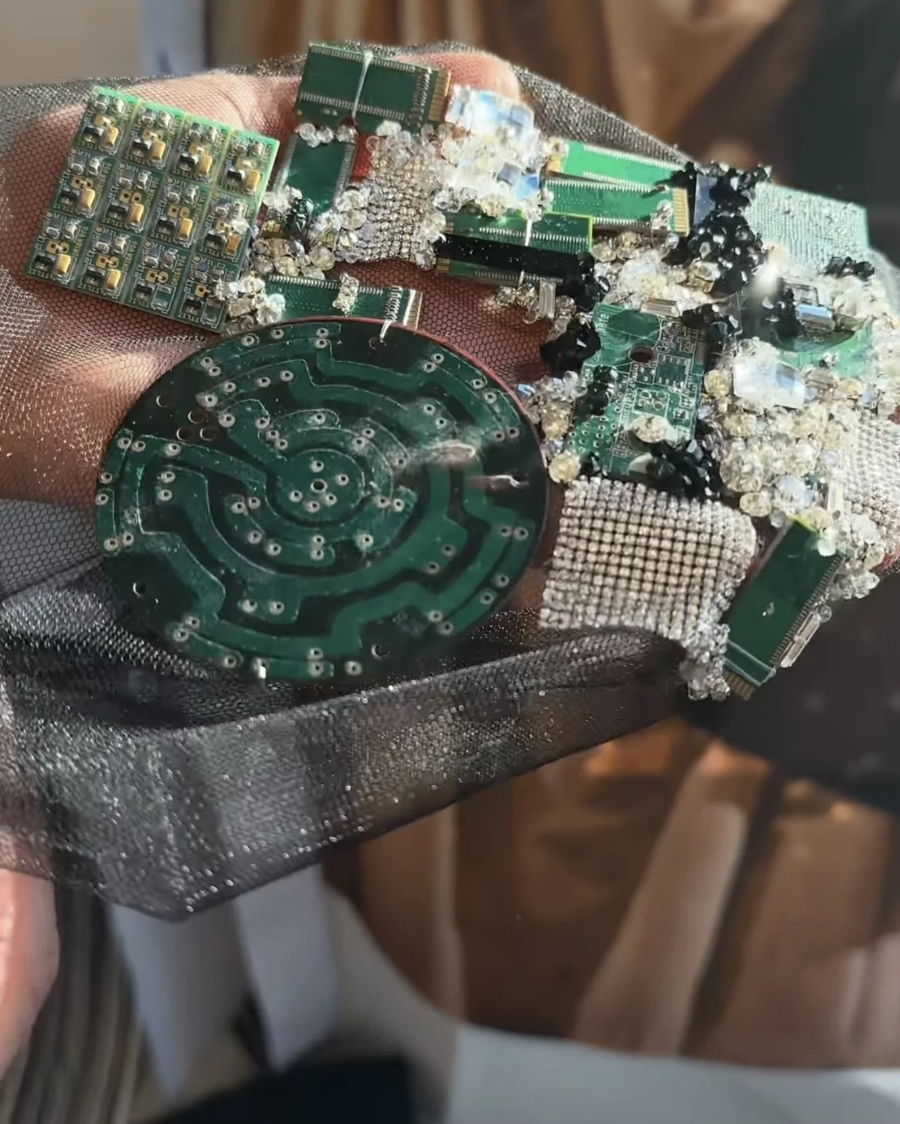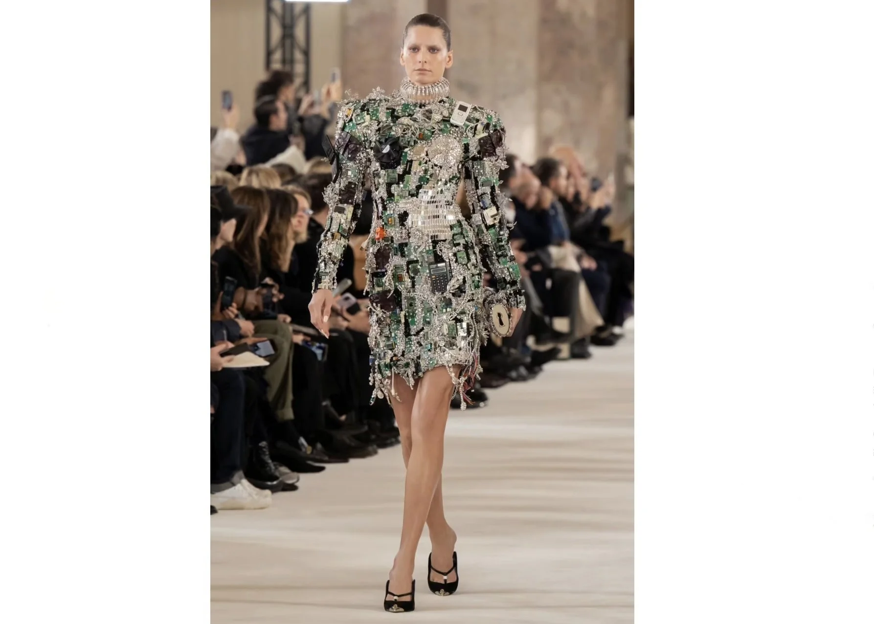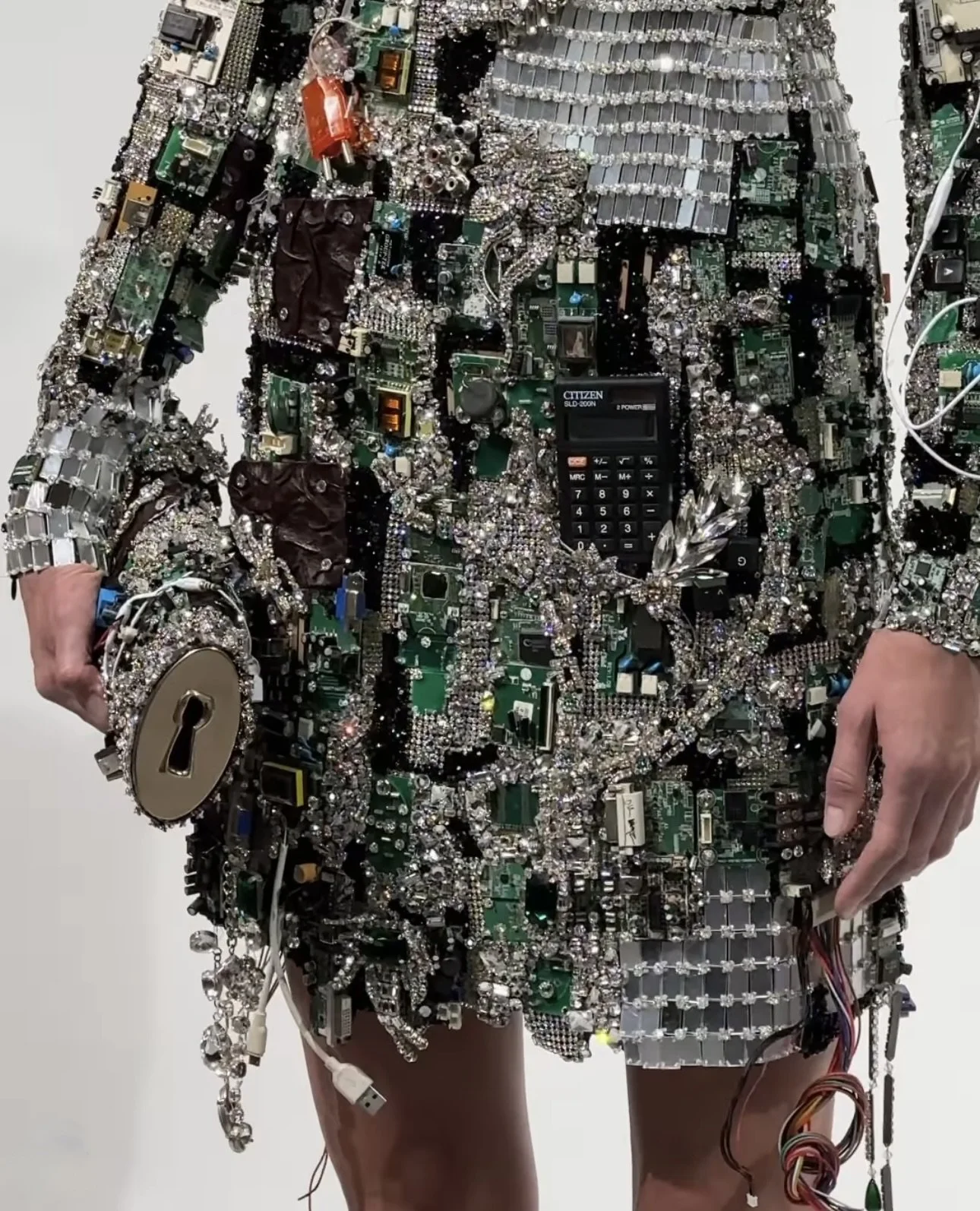 A bit of software and hardware comprised Schiaparelli’s haute couture Spring/Summer 2024 Paris Fashion Week show on January 23. Old phones, mother boards, CPU coolers and chipsets made for a shiny mini dress that sparkles more intensely than Mars.