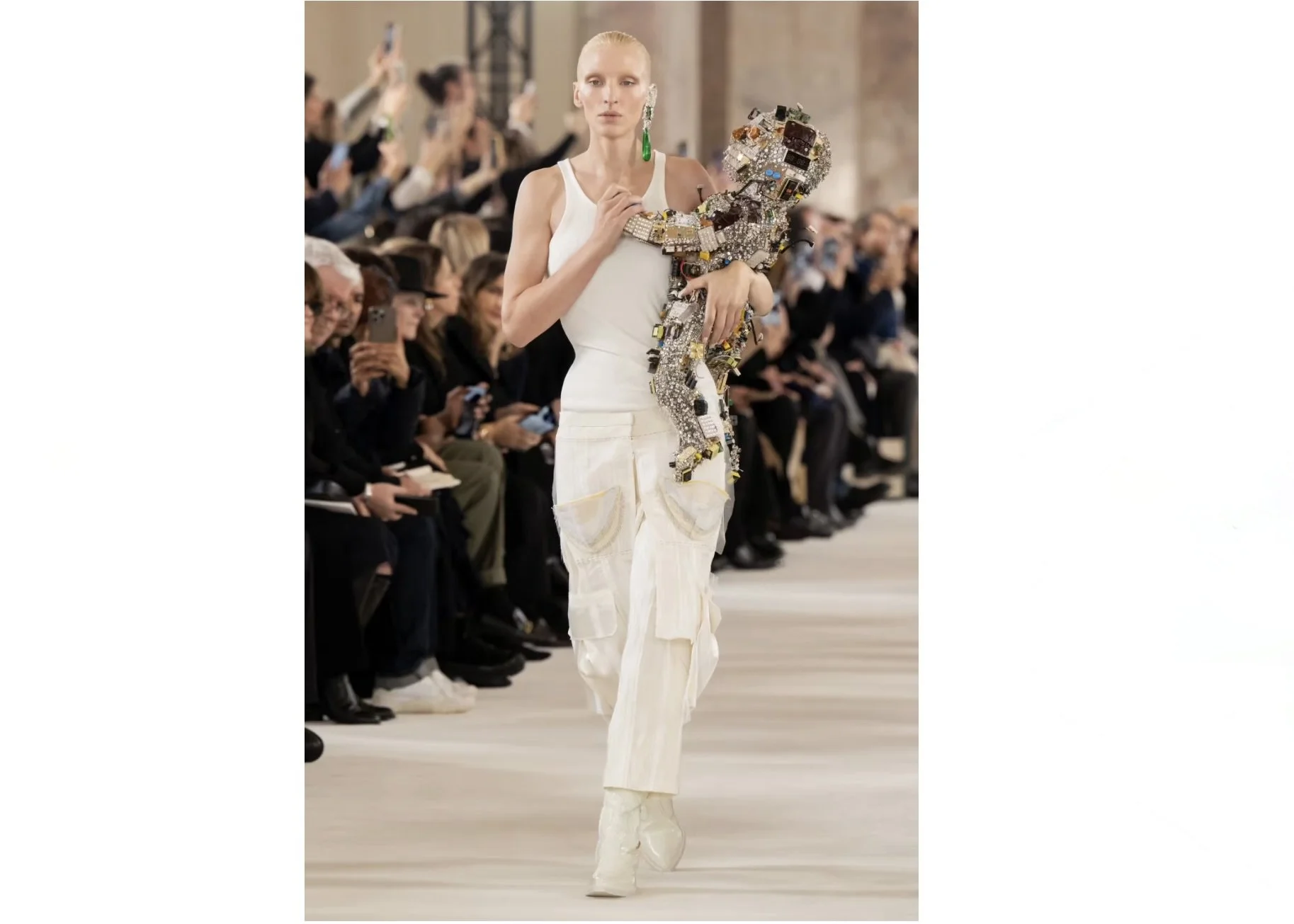 This addition to their PFW show is perfect timing because we are at such a critical turning point in considering where we are headed. No industry or person is immune to tech advances. Carry a flip phone to escape the madness, but a stranger’s eyeglass camera is recording your every move. So is Amazon when you walk down the grocery aisle. We are becoming tech. How we evolve is being demonstrated in the behavior physiology and psychology of the younger generations who only know AI-emergent-tech. It is a battle of the simpler times of how we were and where we may not necessarily need to be.