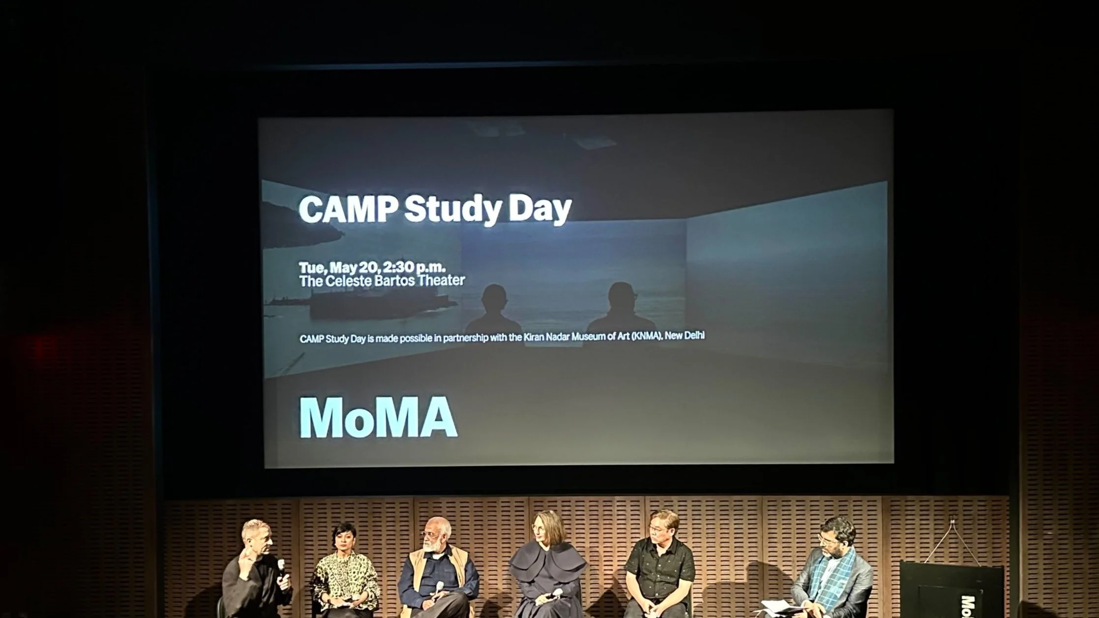 Kiran Nadar Museum of Art (KNMA) co-hosted CAMP Study Day at the Cullman Center (5/20), bringing together leading scholars of media, law, cinema, and visual art. Speakers included Erika Balsom, Lawrence Liang, Debashree Mukherjee, and Ashish Rajadhyaksha, who presented thoughtful, humorous and provoking analyses of CAMP’s seminal work, followed by a discussion with exhibition co-curators Stuart Comer and Rattanamol Singh Johal. A particular point of connection was conveyed through the poetry and images of old Raaj Kumar and Amitabh Bachchan Bollywood films connecting to CAMPs project. The focus Bombay Tilts Down (2022) introduced near-immemorial VHS to modern tech observation.