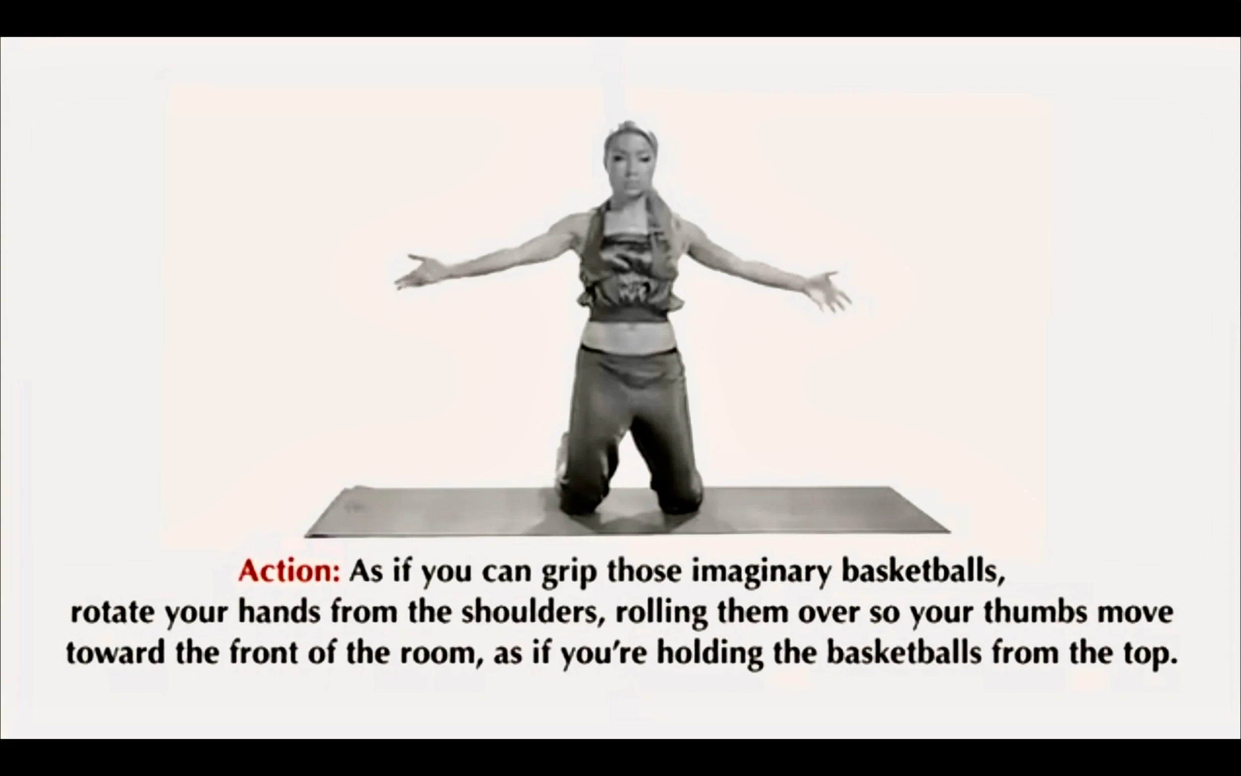 Anderson began her career as a dancer, and her fitness philosophy appears to have been influenced by several entities. The rehabilitative aspects of basketball training are evident in her earlier workout videos, particularly in her signature arm movements, which aim to activate accessory muscles. Everyone has seen by now the downward or forward slap as if to intently bounce a ball. Her former husband, was a professional basketball player around the time she began this fitness endeavor (Figure 1A-1B).